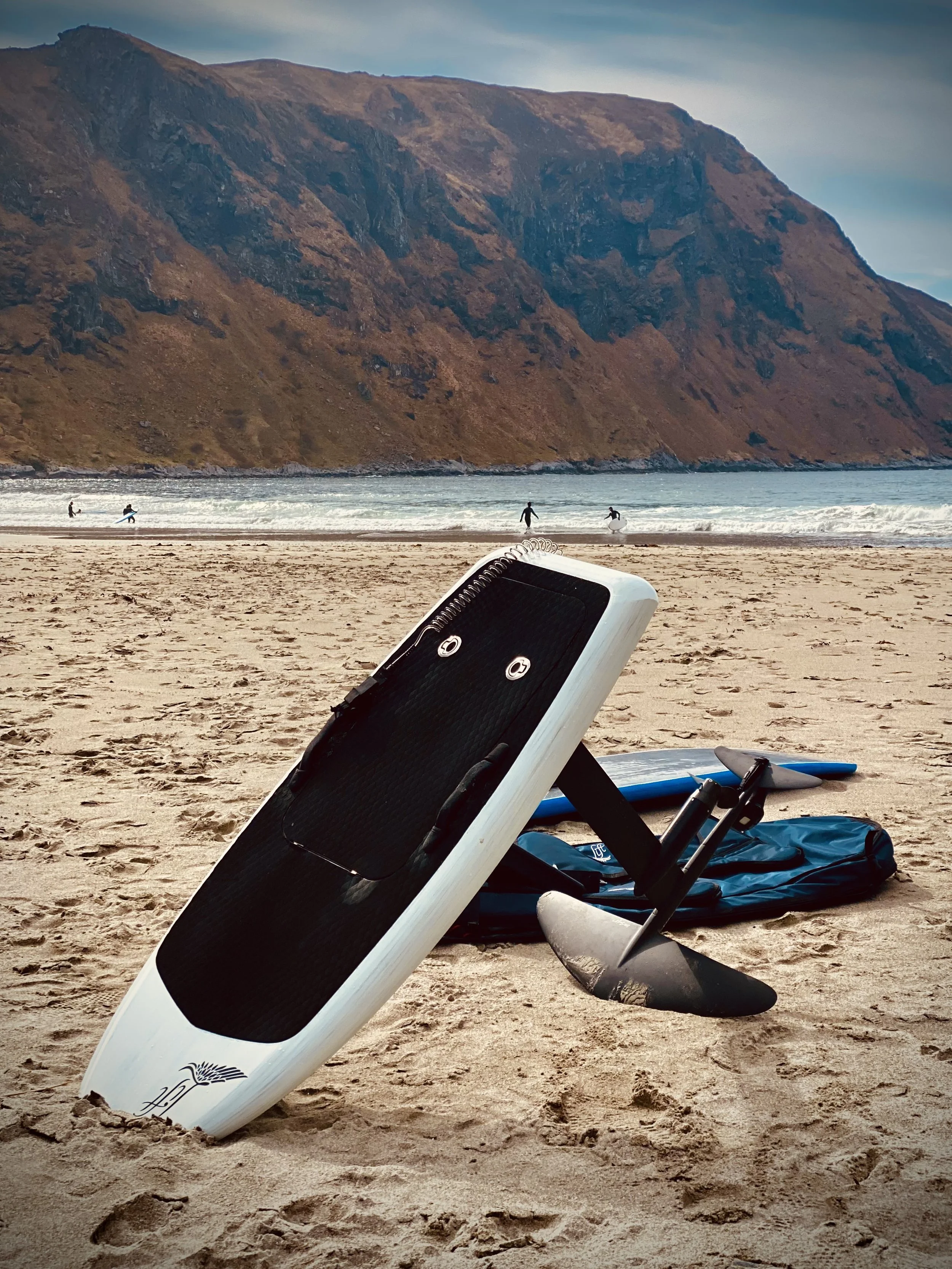 Hoddevik on Torkildin surffiparatiisi valaiden, hylkeiden, Atlantin valtamerelle aukeavan lahden suulla. Paikka on kaikin puolin fantastinen eFoil Playground, jos sää on tyyni homma toimii, jos aaltoa pukkaa homma toimii, ainutkertaiset olosuhteet Surf Foilin, eli ilman moottoria aallon ja siiven siivittämänä aanettömästi avomereltä kohti silmiä hivelevää Norjalaista maisemaa lähestyessä tekee mieli nipistää itseään ettei kuvittele näkevänsä unta!