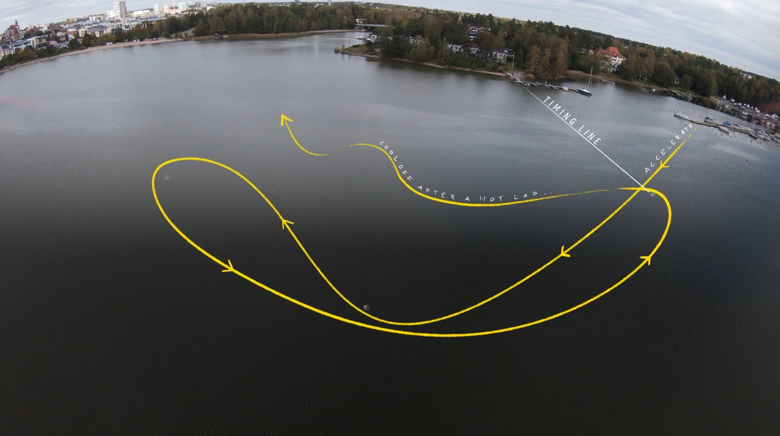 Drop in buoys one after another, drag and drop to re-position to get distances between buoys, predicted speeds and turn angles all dynamically updated as you design your dream track.